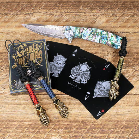 Paracord Knife Lanyard With Antique Brass Davy Jone Pirate Bead / Micro Cord Wrap