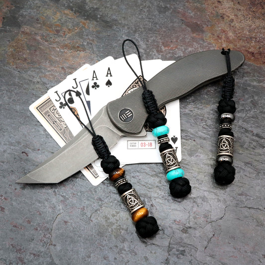 Paracord Knife Lanyard With Celtic Trinity Knot Bead And Semi Precious Stone Beads