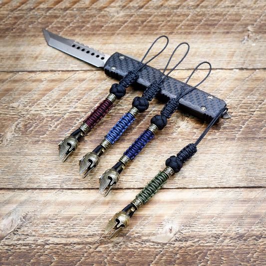 Paracord Knife Lanyard With Antique Brass Spartan Warrior Helmet Bead